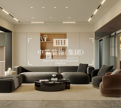 硬装设计摒弃繁琐的设计语言,以简约流畅的设计线条为主,灰蓝色的布艺和木质相互映衬,赋予空间优雅含蓄的气质。