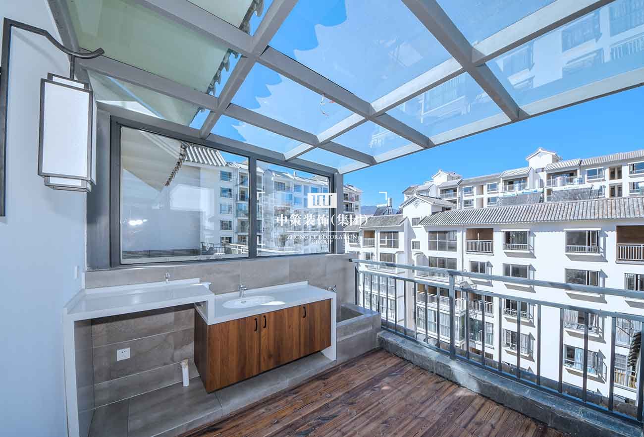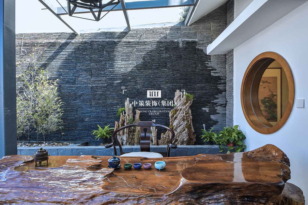 二楼喝茶区开阔的空间,让人心情愉悦,取自天然的设计素材最得传统中式神的,如琢如磨的细腻工艺让整个空间设计质朴而清雅,禅意小景的营造提升了空间的文化韵味。在露台上设置一个茶台,约上三五好友,相聚,品茶、谈天。竹子、松柏的种植,更为露台增添了几分东方风情。