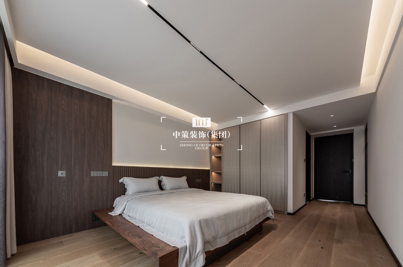④卧房:卧室空间经过精心设计,将原本分散的四个卧室合而为一。格局比例得以重建,既保留了弹性的使用需求,又展现出宏大的空间感。几面全窗让采光得以充分交汇流动,阳光洒落在每一个角落,营造出无比的舒适与温馨。